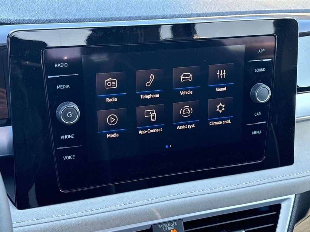 - Radio: MIB3 Composition Media AM/FM/HD -inc: 8" touchscreen multifunction center display, WMA/MP3/FLAC player w/USB-C, voice control, capability for in-vehicle 4G LTE enabled Wi-Fi (cellular data plan required; includes limited trial), capability for connected vehicle services (capabilities for services vary; requires enrollment or subscription), 6-speaker sound system, Bluetooth® connectivity (for compatible devices), SiriusXM w/360L (w/3-month free trial subscription; 360L services require acceptance of Car-Net terms), App-Connect smartphone integration (w/Apple CarPlay, Android Auto and MirrorLink) via USB, wireless App-Connect smartphone integration (for compatible devices) w/multi-phone pairing capability, USB-C enhanced charging up to 45W (for compatible devices) and Qi wireless inductive charger (for compatible mobile phones and accessories) All connected vehicle services subject to terms & limitations. Some services require a paid subscription. See dealer or vw.com/connected for details.
