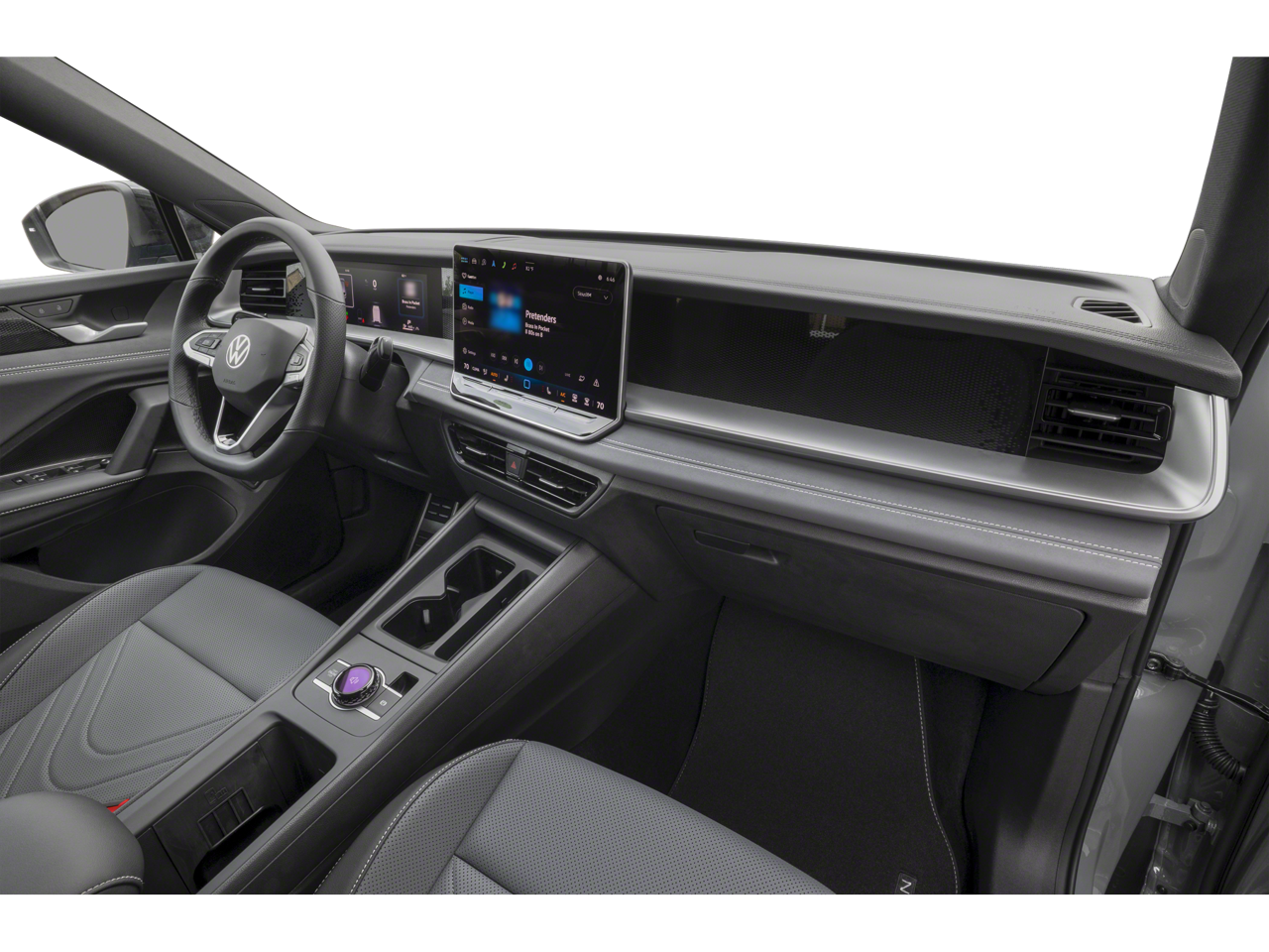 - MIB4 Composition Media Touchscreen w/AM/FM Radio -inc: WMA/MP3/FLAC player w/USB, 12.9" touchscreen multi-function center display w/backlit sliders, voice control, 6 speakers + center speaker (7 speakers total) sound system, capability for in-vehicle 4G LTE enabled Wi-Fi (cellular data plan required; includes limited trial), capability for connected vehicle services (capabilities for services vary; requires enrollment or subscription), Bluetooth® connectivity (for compatible devices), SiriusXM w/360L (w/3-month free trial subscription; 360L services require acceptance of Car-Net terms), App-Connect smartphone integration (w/Apple CarPlay, Android Auto and MirrorLink) via USB, wireless App-Connect smartphone integration (for compatible devices) w/multi-phone pairing capability, 45W fast charging (for compatible mobile phones and accessories) via USB in both rows and Qi wireless inductive charger, cooled, up to 15W (for compatible mobile phones and accessories) All connected vehicle services are subject to terms and limitations. Some services require a paid subscription. See dealer or vw.com/connected for important details.