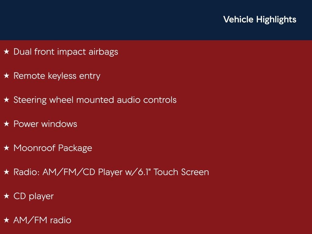 - Radio: AM/FM/CD Player w/6.1in Touch Screen