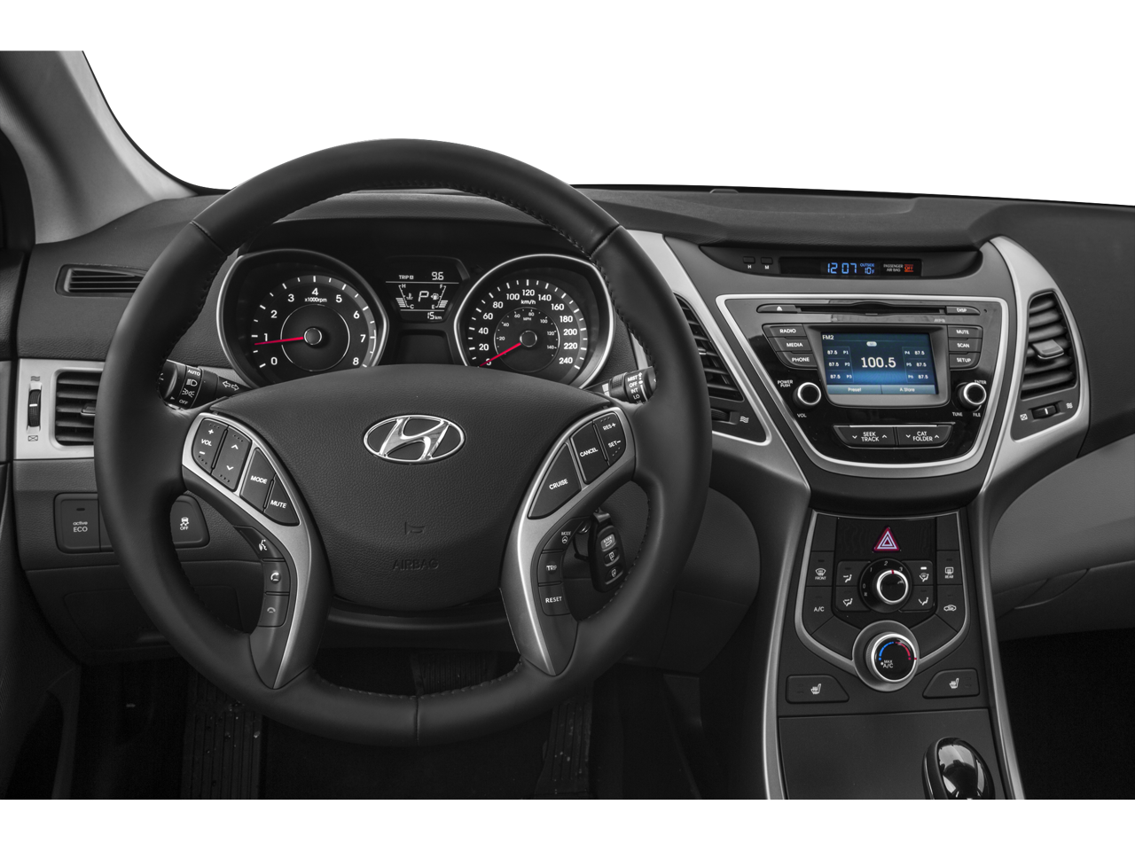 Safety is also a top priority, with features like Electronic Stability Control, Traction Control, and a comprehensive airbag system to help protect you and your passengers. The Rear-View Camera and Panic Alarm further enhance the Elantra's security and confidence behind the wheel.