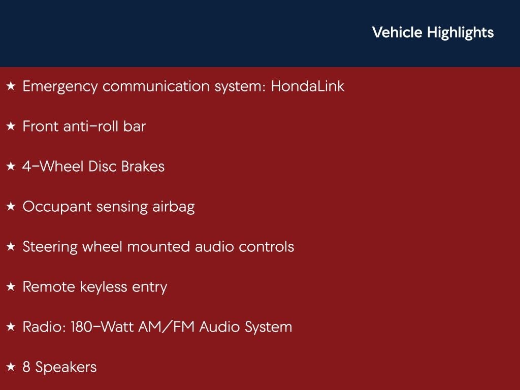 - Emergency SOS Capable HondaLink emergency SOS system via mobile device