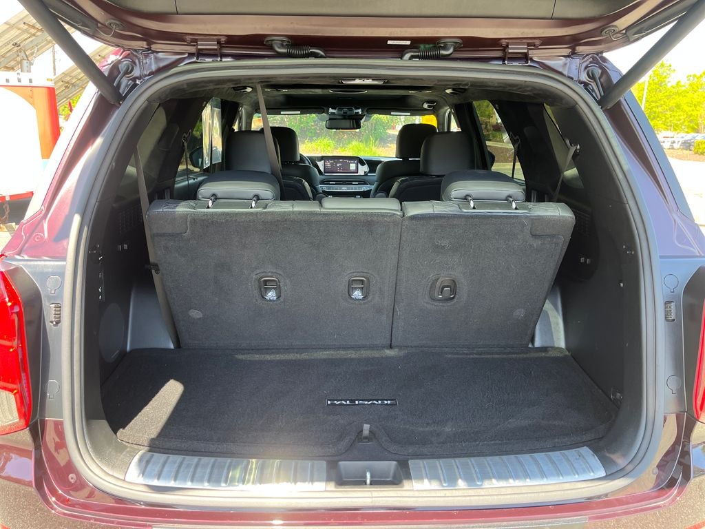 New Price! Burgundy 2021 Hyundai Palisade Calligraphy AWD 8-Speed Automatic with SHIFTRONIC V6 12 Speakers, 3rd row seats: split-bench, 4-Wheel Disc Brakes, Alloy wheels, AM/FM radio: SiriusXM, Apple CarPlay & Android Auto, Auto-dimming Rear-View mirror, Bumpers: body-color, Cargo Cover/Screen, Cargo Net, Cargo Tray, Carpeted Floor Mats, Driver vanity mirror, Emergency communication system: Blue Link Connected Car Service (3-year complimentary subscription), Four wheel independent suspension, Front Bucket Seats, Front Center Armrest, harman/kardon® Speakers, Heated & Ventilated Front Bucket Seats, Heated door mirrors, Heated front seats, Memory seat, Navigation System, Option Group 01, Outside temperature display, Passenger door bin, Passenger vanity mirror, Power door mirrors, Power driver seat, Power steering, Power windows, Premium Nappa Leather Seat Trim, Radio data system, Rear window wiper, Reclining 3rd row seat, Remote keyless entry, Spoiler, Tachometer, Telescoping steering wheel, Tilt steering wheel, Traction control, Trip computer, Variably intermittent wipers, Ventilated front seats, Ventilated rear seats, Wheel Locks.