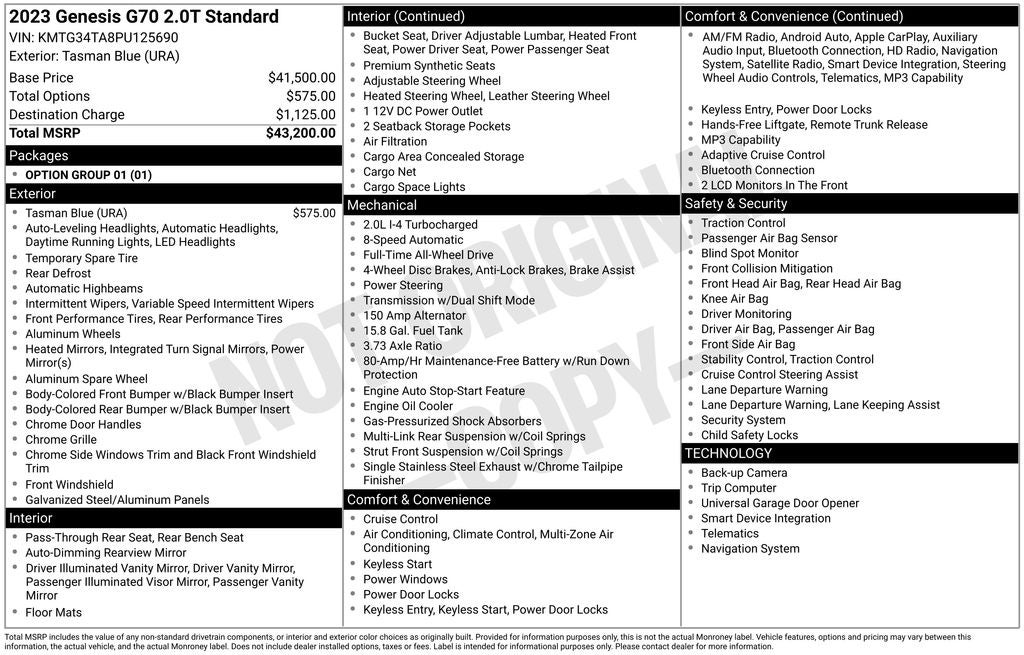 - Vehicle Name: Genesis G70