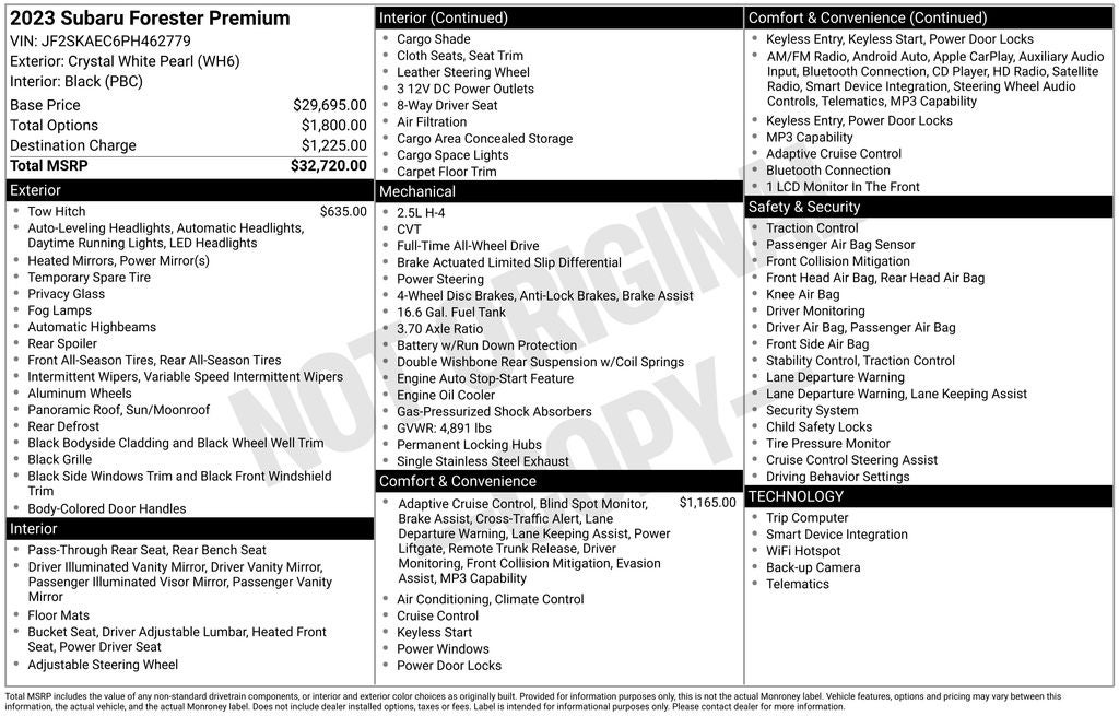 - Vehicle Name: Subaru Forester