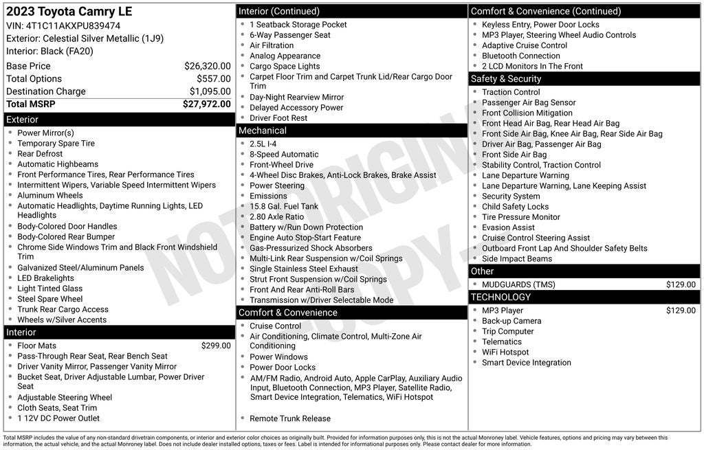 Price excludes Dealer Processing Charge (not required by law):$499