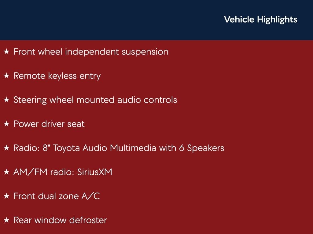 - Radio: 8" Toyota Audio Multimedia with 6 Speakers